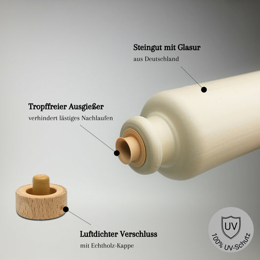 Der hochwertig verarbeitete Ausgießer ermöglicht ein tropffreies, präzises Dosieren, sodass Sie Ihre Speiseöle sauber, kontrolliert und ohne Kleckern verwenden können.