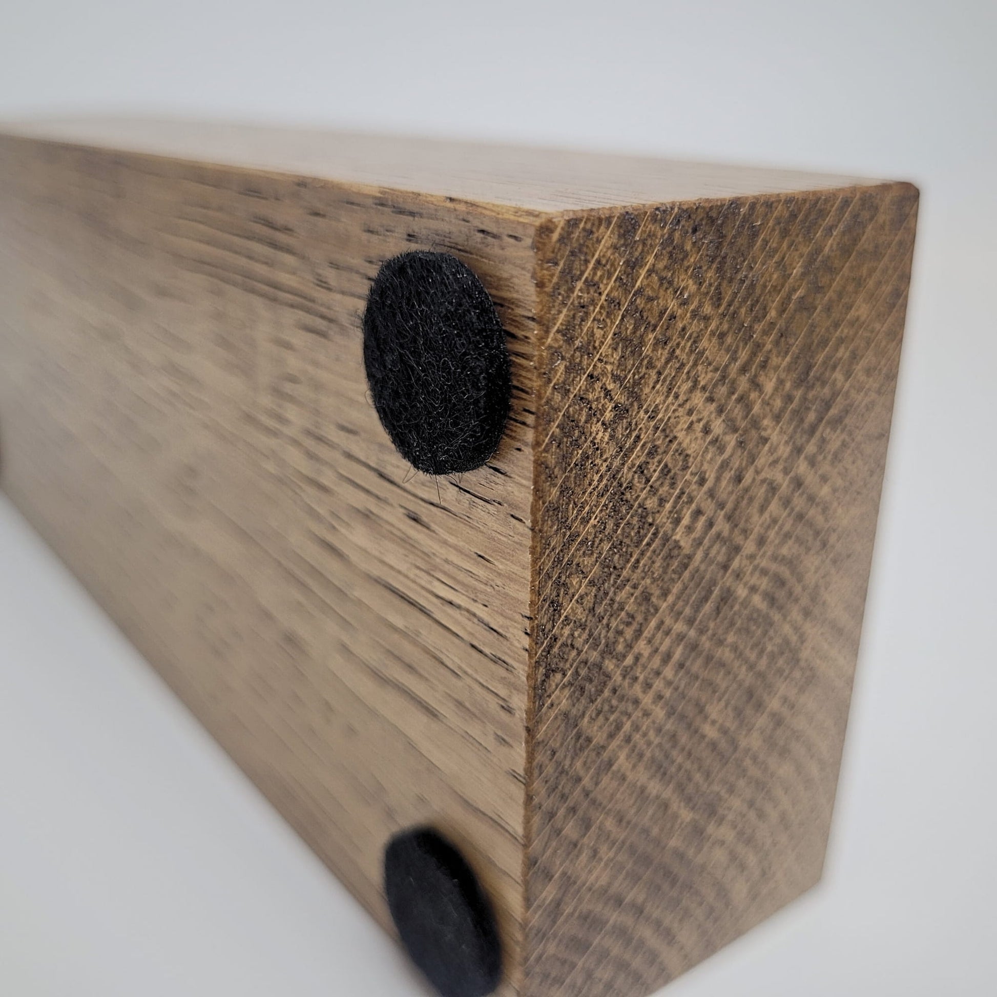 Der Flaschenständer ist aus massivem Eichenholz vom Schwarzwald handgefertigt und mit hochwertigem Hartwachsöl behandelt. So bleibt das Holz geschützt und behält seine natürliche Optik. Der zeitlose Flaschenhalter präsentiert Ihre Keramikflaschen stilvoll, hält sie sicher an ihrem Platz und jederzeit griffbereit.