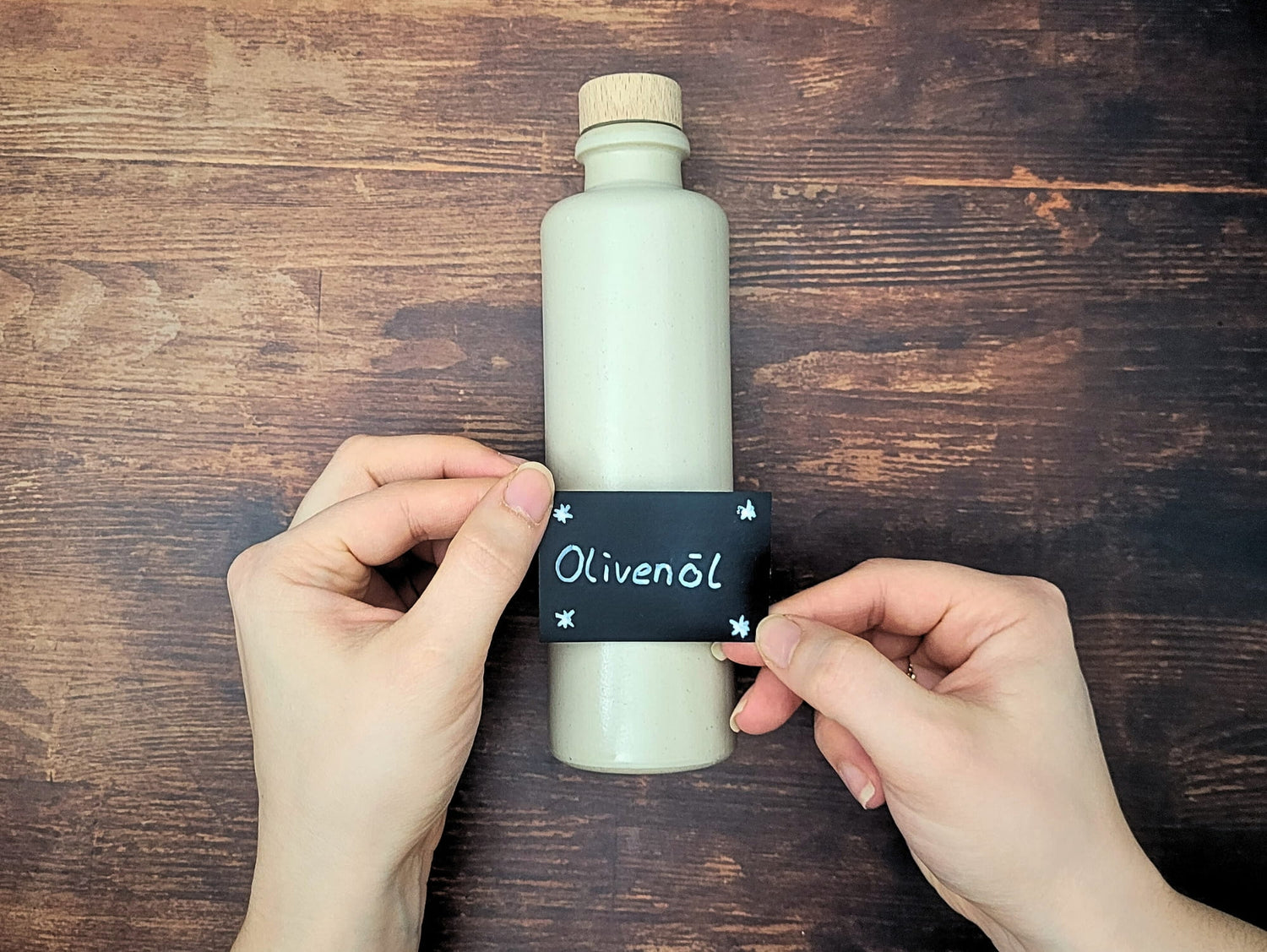 Im Lieferumfang sind 10 Stück selbstklebende Tafeletiketten sowie ein Kreidestift enthalten. Damit können Sie Ihre Flaschen einfach und flexibel beschriften. Die Etiketten haften zuverlässig auf glatten Oberflächen und lassen sich bei Bedarf rückstandslos ablösen und erneut anbringen. Dank der abwischbaren Kreidebeschriftung können Sie die Etiketten immer wieder neu beschriften – ideal, um verschiedene Öle oder Essige übersichtlich und stilvoll zu kennzeichnen.